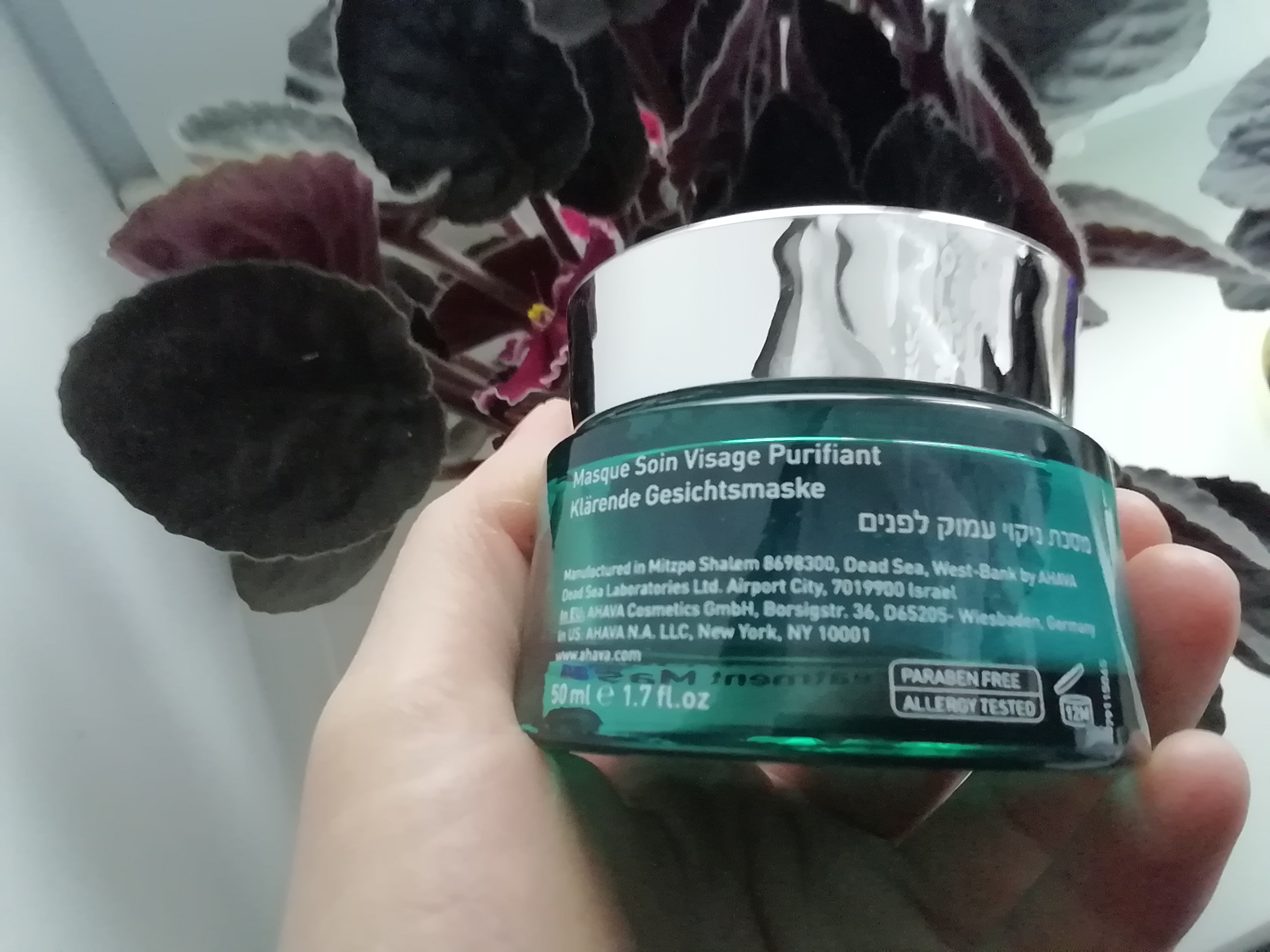 Aqua (Mineral Spring Water), Kaolin, Glycerin, Aloe Barbadensis Leaf Juice, Glyceryl Stearate, Propanediol (Corn derived Glycol), Synthetic Fluorphlogopite, Silt (Dead Sea Mud), Titanium Dioxide, Tin Oxide, Butylene Glycol, Calendula Officinalis Extract,1,10 –Decanediol, 10-Hydroxydecanoic Acid, Sebacic Acid, Caprylyl Glycol, Chlorphenesin, Phenoxyethanol, Bisabolol, Jojoba Esters, Xanthan Gum, Magnesium Aluminum Silicate, Linum Usitatissimum (Linseed) Seed Extract, Sodium Levulinate, Honokiol, Magnolol, 1,2 Hexanediol, Silica, CI 77007, Allantoin, Parfum (Fragrance), Dipotassium Glycyrrhizate, Maris Sal (Dead Sea Salt), Maris Aqua (Dead Sea Water), Tetrahydropiperine, Ferric Ferrocyanide.