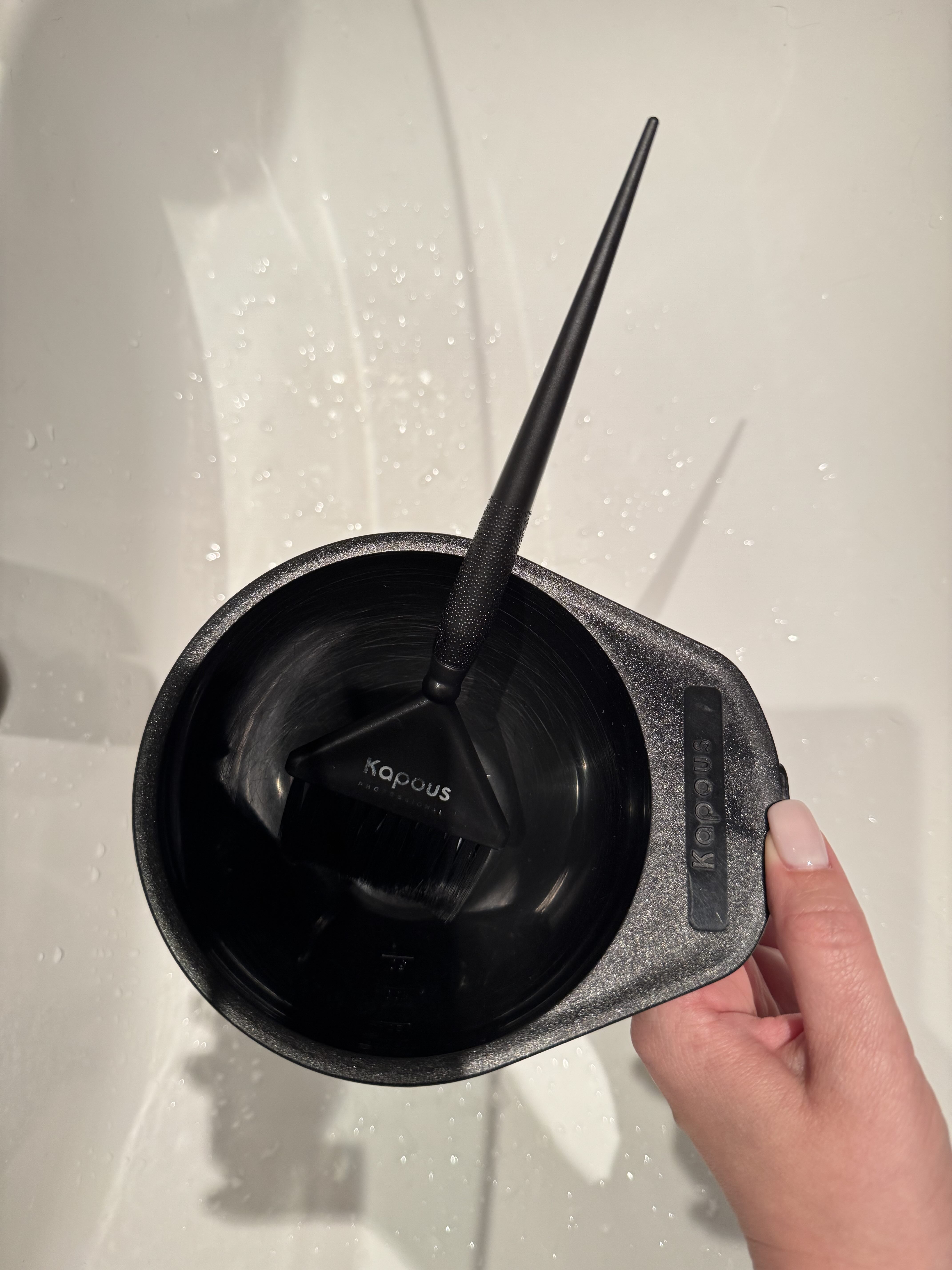 Миска из пластмассы Kapous, черная, для смешивания красителей имеет удобную ручку и насечки для определения объема. Изготовлена из высококачественного пластика стойкого к длительному воздействию химических компонентов красок. Аксессуар имеет оптимальную форму и размер, обеспечивающую комфортное положение руки во время работы. С таким изделием процесс окрашивания становится не только удобным и безопасным, но и приятным. Объем 300 мл. Используется для смешивания средств для окрашивания или восстановления волос.