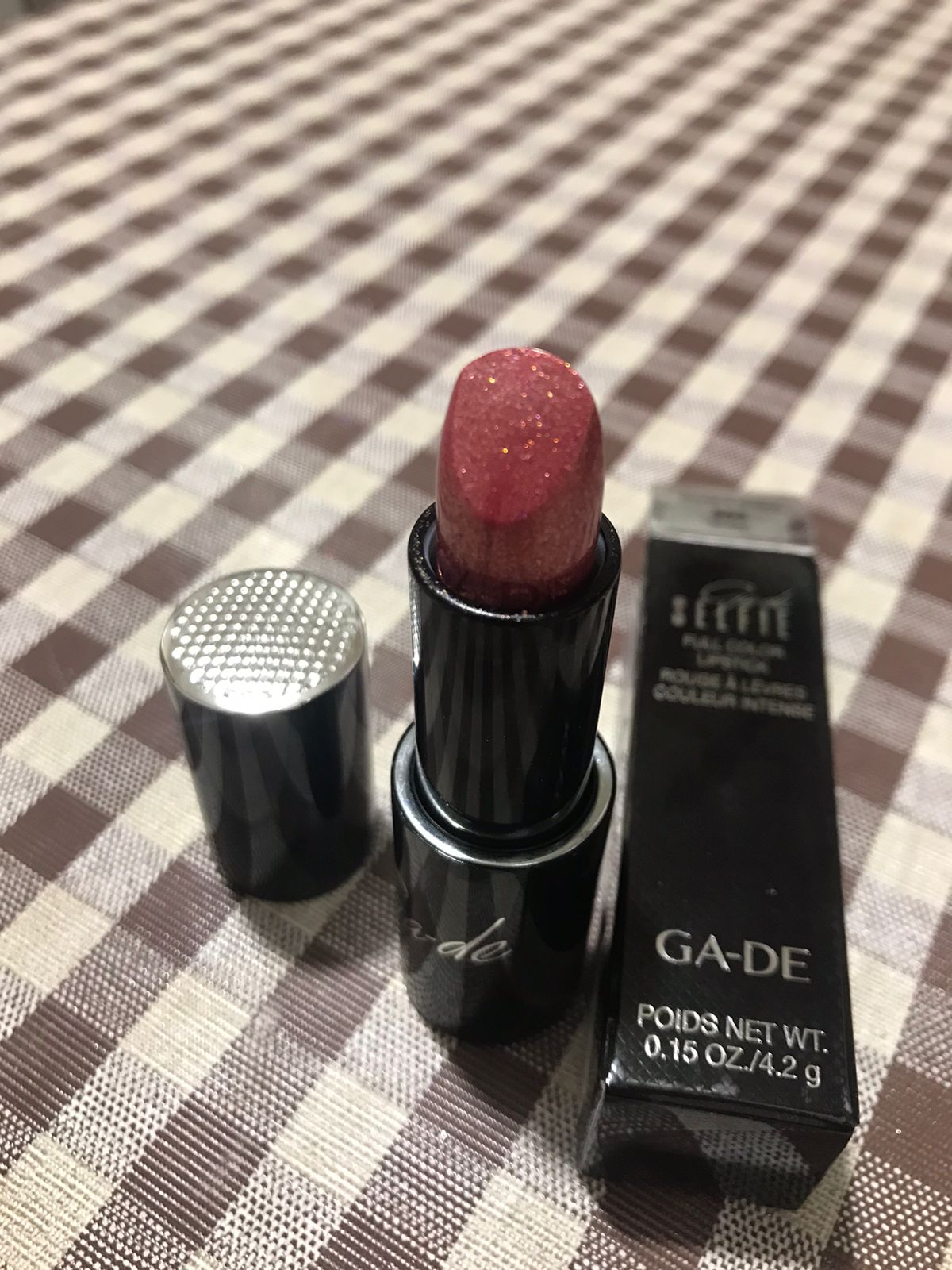 Помада очень понравилась своим цветом и текстурой! Обалденно сияет при нанесении своими мелкими блестками! Смотрится очень классно!