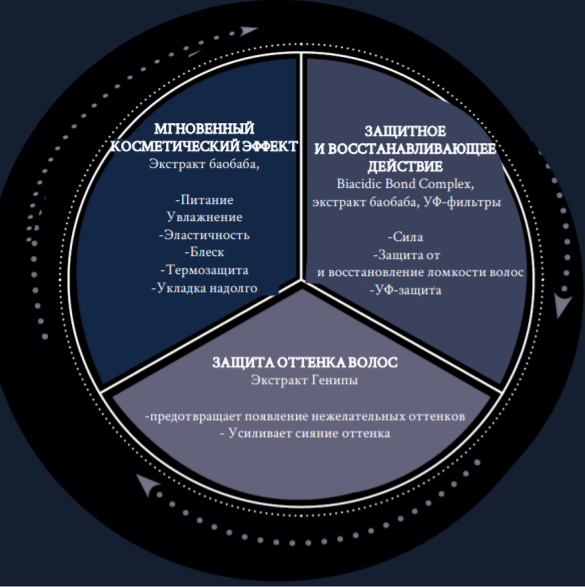 Флюид запечатывает действие уходовых продуктов серии, восстанавливает повреждённые участки волоса и защищает их от ломкости. Имеет мгновенный, а также накопительный эффект, укрепляя кутикулу волоса и придавая локонам дополнительный блеск и мягкость с каждым нанесением. Формула содержит УФ-фильтры для защиты волос от УФ-лучей, а также обладает действием термозащиты и идеально для нанесения перед сушкой волос феном.