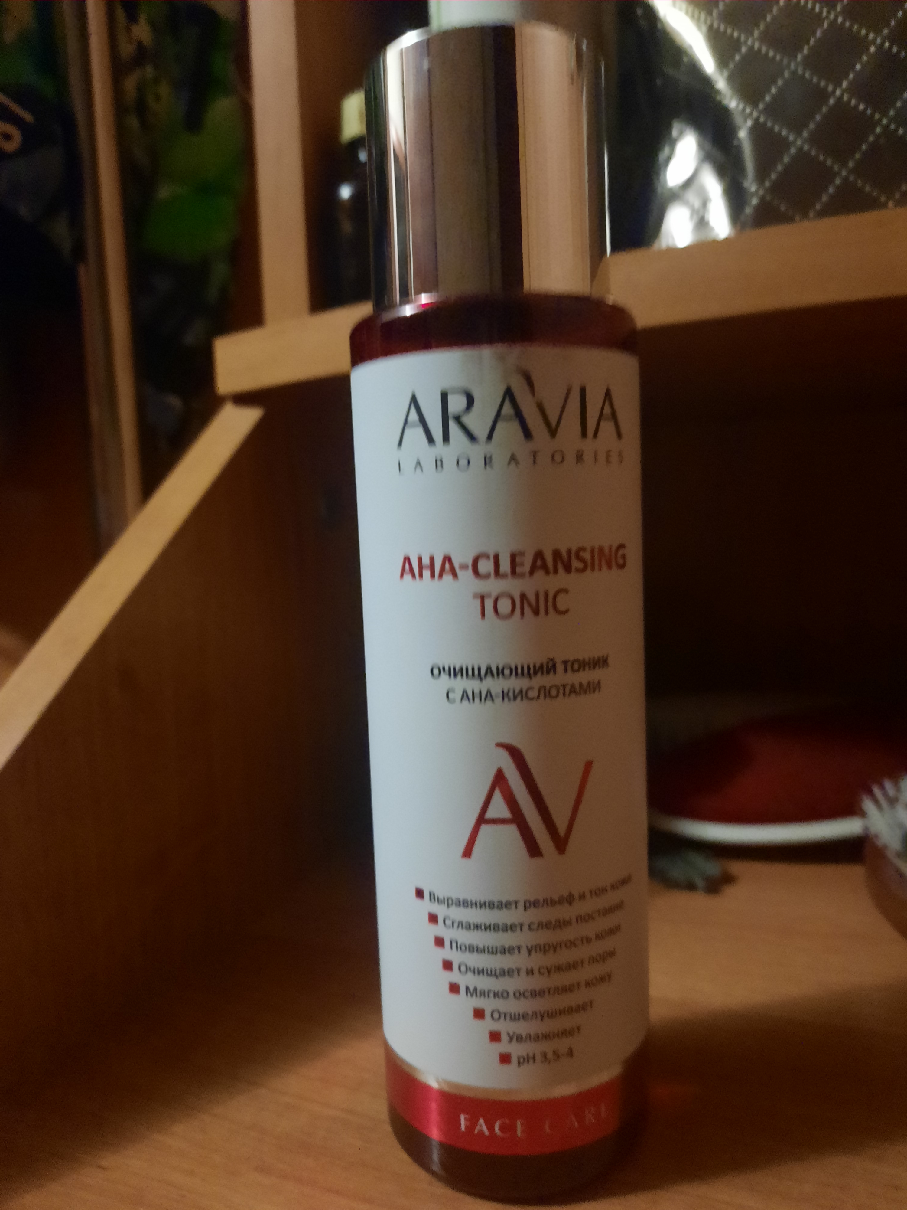 Тоник для лица с комплексом AHA кислот мягко отшелушивает и обновляет кожу. При регулярном применении выравнивает рельеф и тон кожи, улучшает цвет лица, устраняет постакне, пигментацию и рубцы, борется с возрастными изменениями, сокращает глубину морщин, повышает упругость и эластичность. Тоник увлажняет и придает коже сияние. Очищает и сужает поры, осветляет черные точки. Ускоряет процессы регенерации и обновления клеток. Обладает противовоспалительным действием. Подходит для ежедневного использования. рН3,5-4.