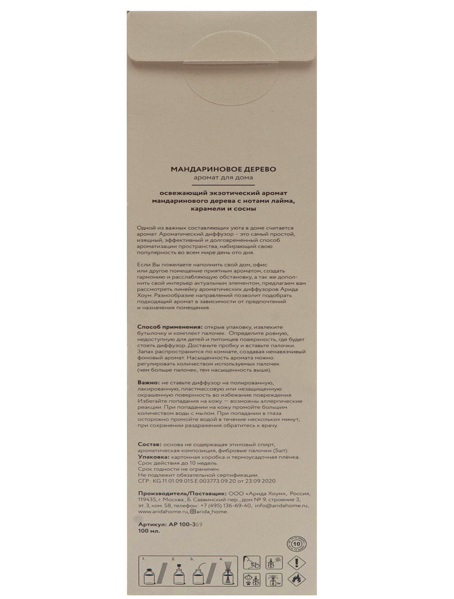 Основа не содержащая этиловый спирт, ароматическая композиция, фибровые палочки (5 шт).