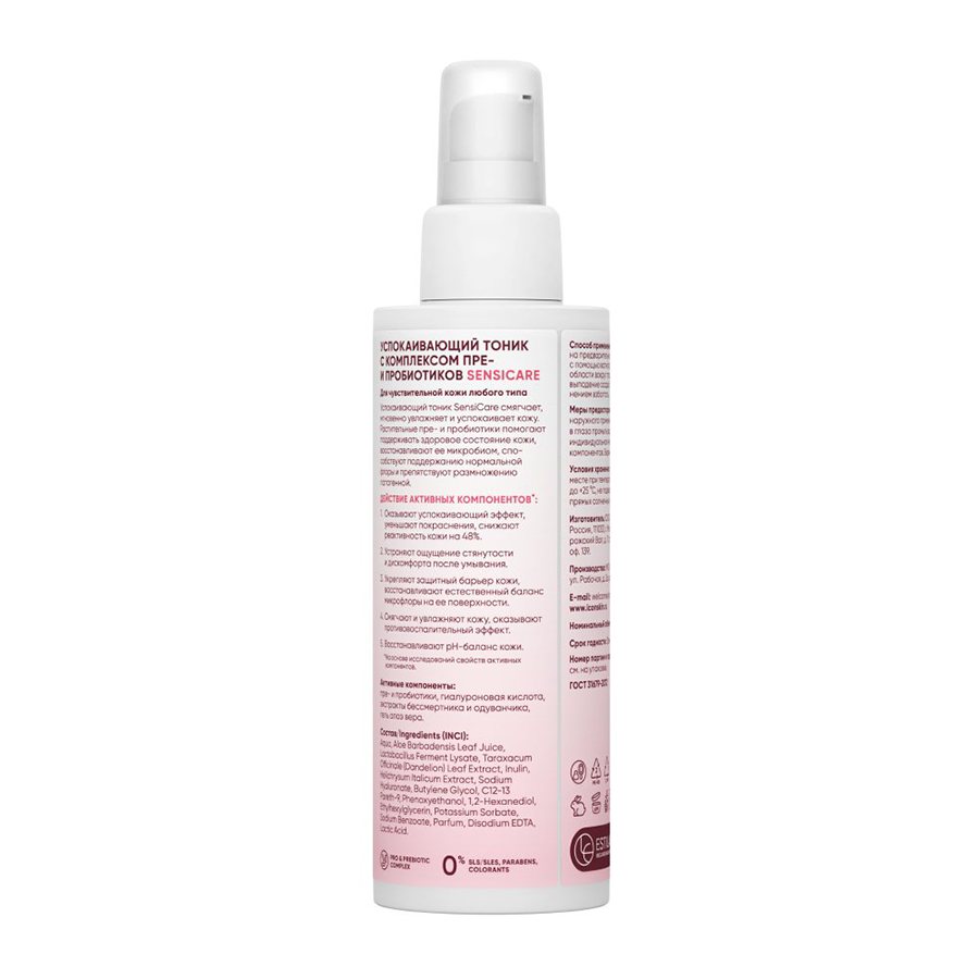 Успокаивающий тоник SensiCare на основе растительных пре- и пробиотиков смягчает, мгновенно увлажняет и успокаивает чувствительную кожу. Растительные пре- и пробиотики, входящие в состав средства, помогают поддерживать здоровое состояние кожи лица, восстанавливают ее микробиом, способствуют поддержанию нормальной флоры и препятствуют размножению патогенной. Тоник особенно рекомендован к применению при снижении местного иммунитета кожи.
