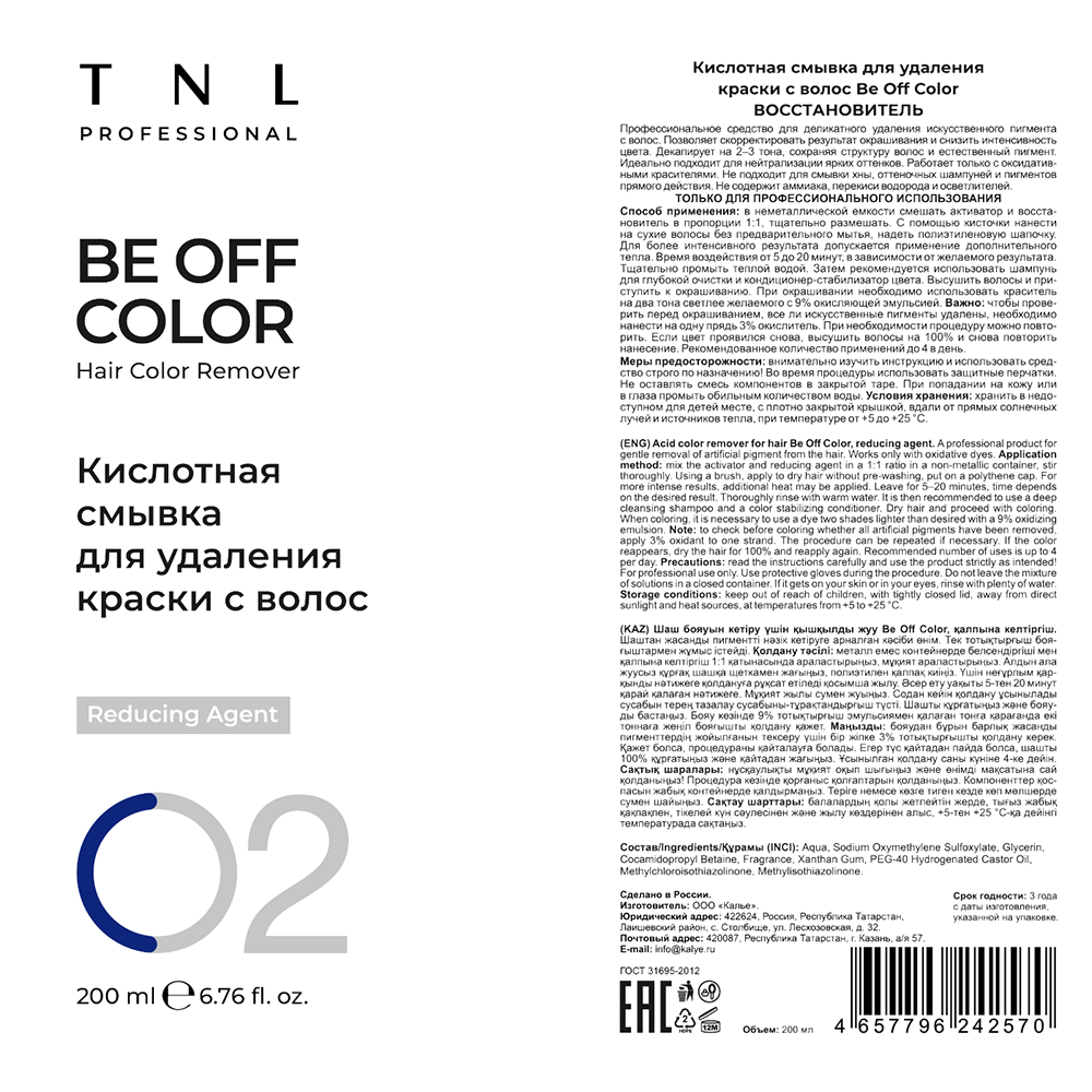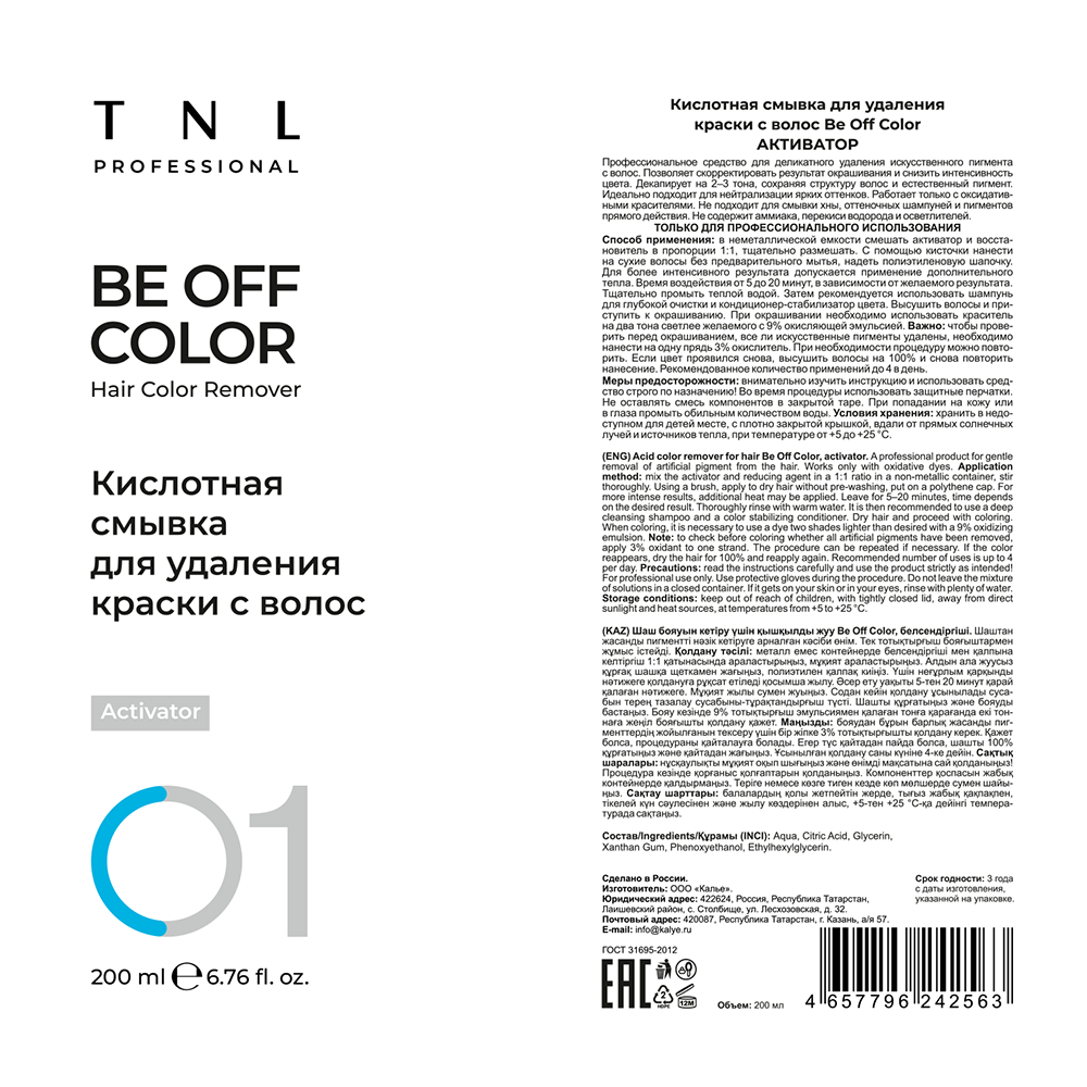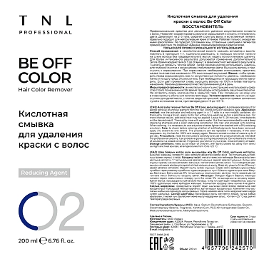 Be Off Color — это профессиональный продукт, состоящий из активатора и восстановителя, позволяющий выводить искусственный пигмент с волос. Кислотная смывка декапирует на 2-3 тона, сохраняя структуру и естественный цвет волос. Чтобы добиться необходимого результата, кислотную смывку можно использовать до 4 раз в день, а повторное окрашивание делать сразу после процедуры смывки. Не содержит аммиака, перекиси водорода и осветлителей. Продукт идеально подходит для нейтрализации ярких оттенков и не подходит для смывки хны, оттеночных шампуней и пигментов прямого действия. Кислотная смывка позволяет снизить интенсивность цвета или изменить неудачный результат окрашивания с максимально бережным отношением к структуре волос.