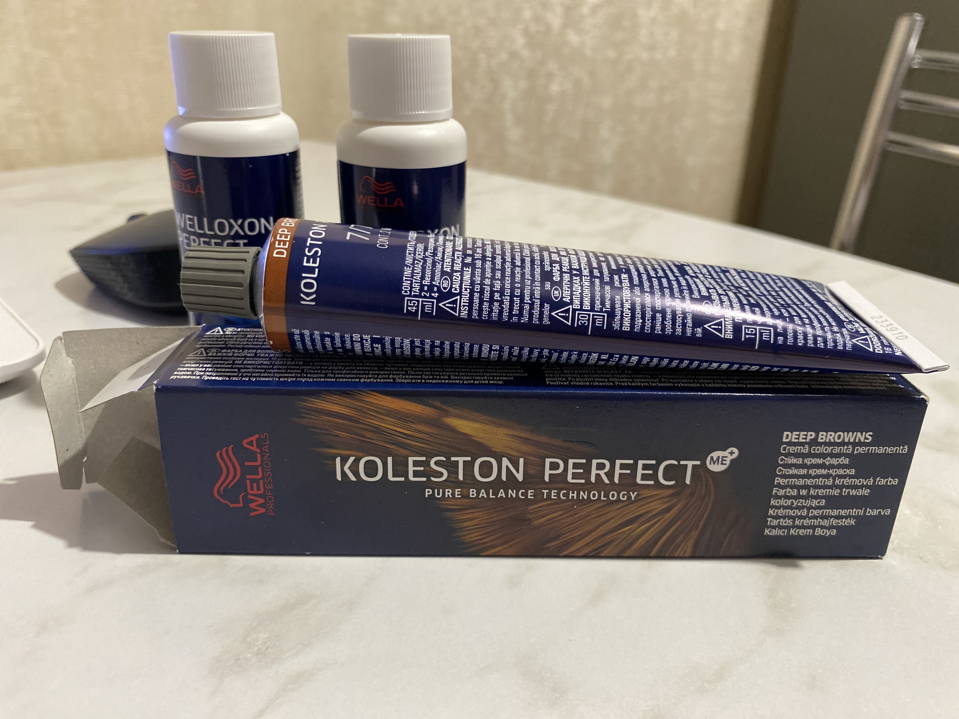 Пропорции смешивания 1:1 (одна часть Koleston Perfect и одна часть Welloxon Perfect).
